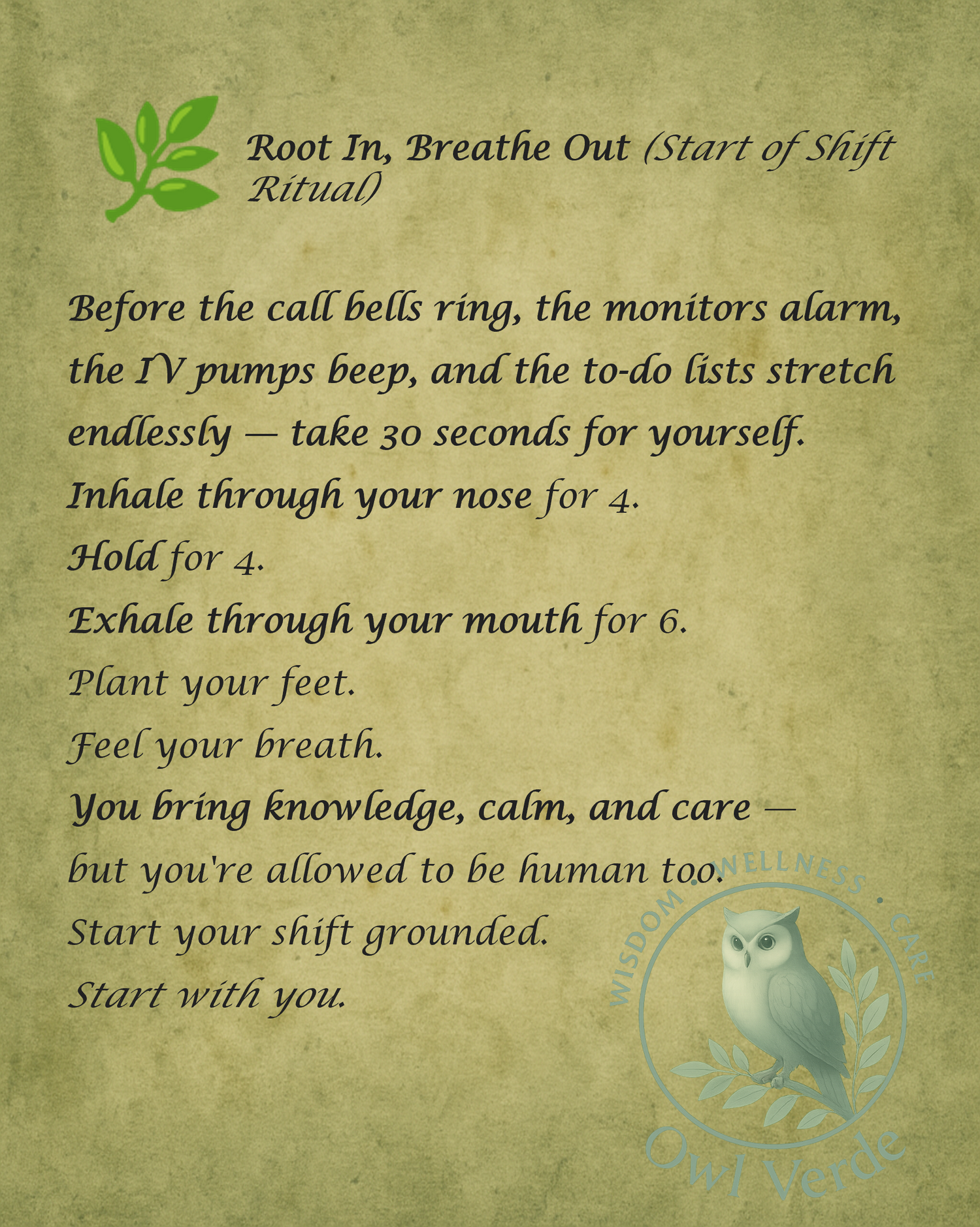 Root In, Breathe Out is your 30-second wellness ritual to reconnect with yourself before the shift begins.